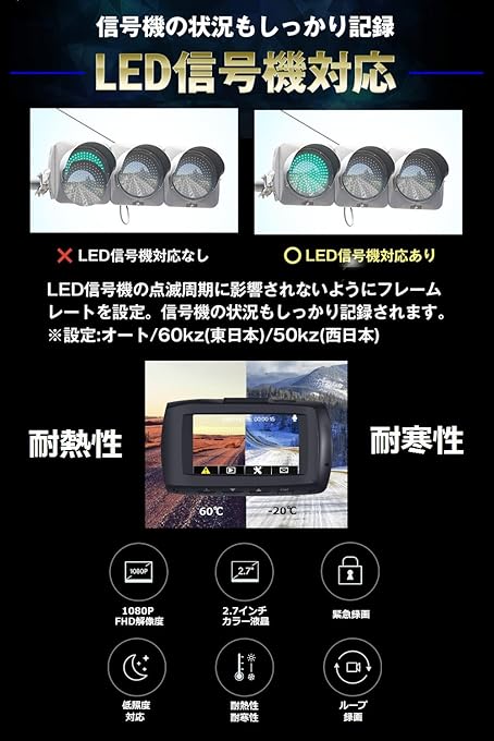 ●全国のLED信号対策済みです。ドライブレコーダーは東日本・西日本の異なる周波数でもしっかり録画できます。