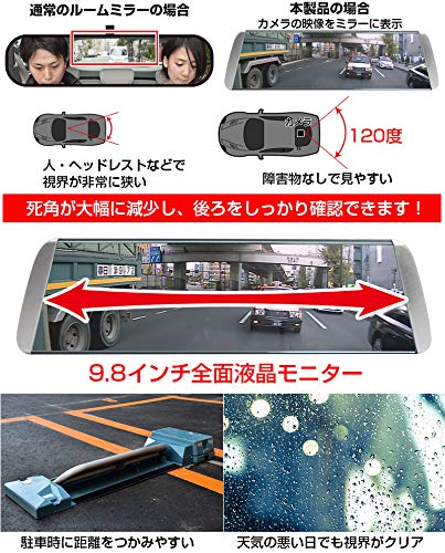サンコー ルームミラーがリアモニターになる!前後撮影ドライブレコーダー MRCAM980 当て逃げ あおり運転 フルHD 12V対応/サンコーレアモノショップ