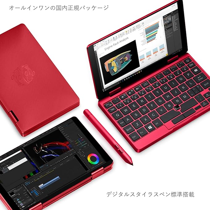 ボディカラーは縁起の良い「赤」、天板には強さ・勇気・忍耐のシンボルとされる「鯉」をあしらったイラストを刻印したスペシャルバージョンです。わずか518gのコンパクトボディに、インテル第8世代 Core M3-8100Y CPUと8GB RAM、そして大容量512GBのPCIe接続SSDを搭載。ビジネスパーソンのラッキーアイテムとしても常に携帯できるWindows 10 搭載UMPCです。