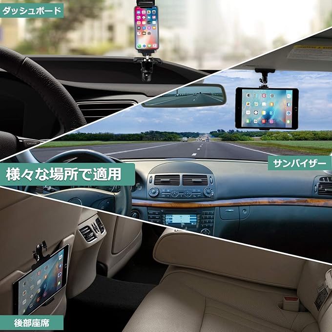 クリップを後部座席のポケットに挟んだり、ネジ穴を活用してベッド近くに一脚を置き寝る前の映画鑑賞が楽しめる。