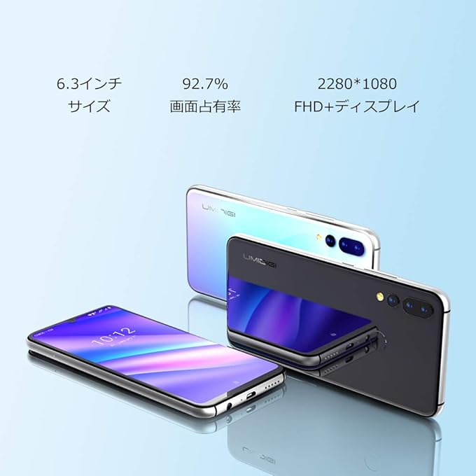 6.3インチというファブレットサイズにして水滴ノッチを採用したため、画面占有率が92.7%と高く、大画面という印象を強くする。これで解像度が低いと残念な感じになってしまうがFHD+(2280x1080)に仕上げてきた。