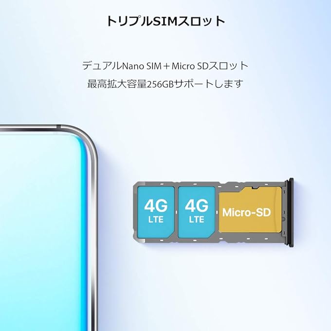 ミドルレンジのスマートフォンでも採用されていないことがあるトリプルスロット(DSDV対応)搭載。