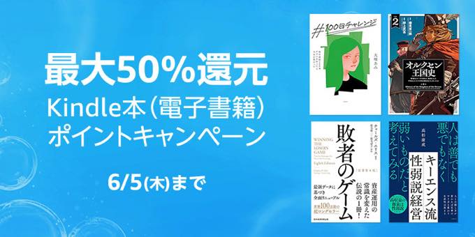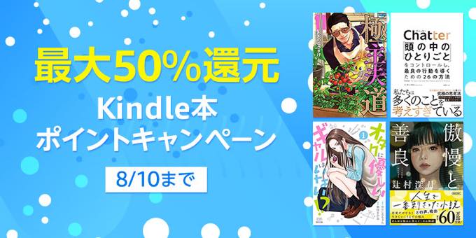 アマゾンジャパンの電子書籍サービス「Kindleストア」において、期間限定で最大50%還元する「Kindle本ポイントキャンペーン」を開催している。