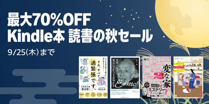 (本日終了〜9/25まで)Kindle本が最大70%OFFに、読書の秋キャンペーン開催中