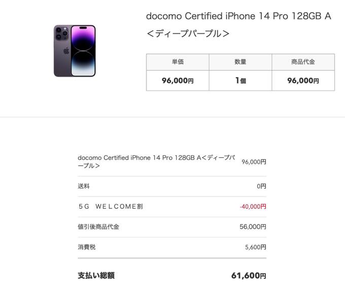 最安iPhoneはドコモオンラインショップにあり、本体一括61,600円で「iPhone 14 Pro」を購入した話。