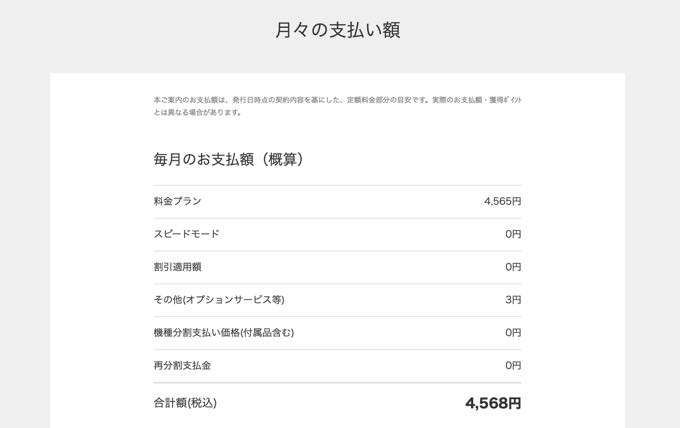 EXIMOは1GB未満のデータ使用量であれば最安の4,565円で許してくれるようだ。