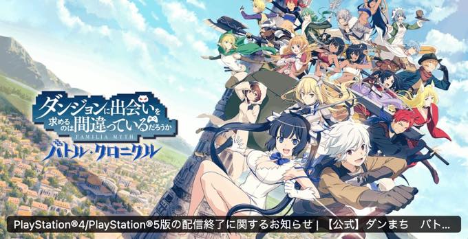 Aimingは2025年4月2日、ゲーム「ダンまち バトル・クロニクル」のPlasyStation版についてサービスを終了すると発表した。