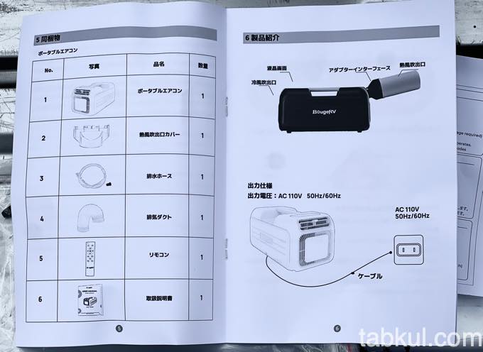 同梱物が入っているかチェックしやすい見やすさのあるページ構成になっていた。