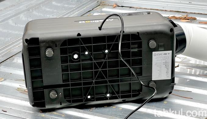上図の黒いアダプターを「BougeRV 3500BTU」に取り付けて、さらに円形の箇所に排気ホースを取り付ける。