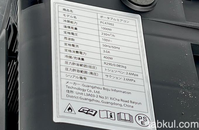 型番は「PC47002」となっていた。コンプレッサーはR290を搭載。