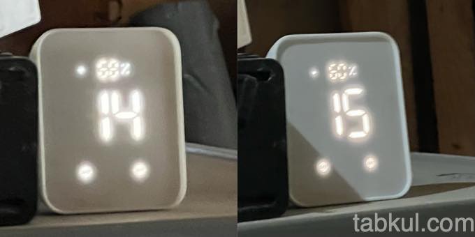 写真がブレているので文字に書き出すと湿度が68%から60%へ減少し、室温が14度から15度まで上昇した。