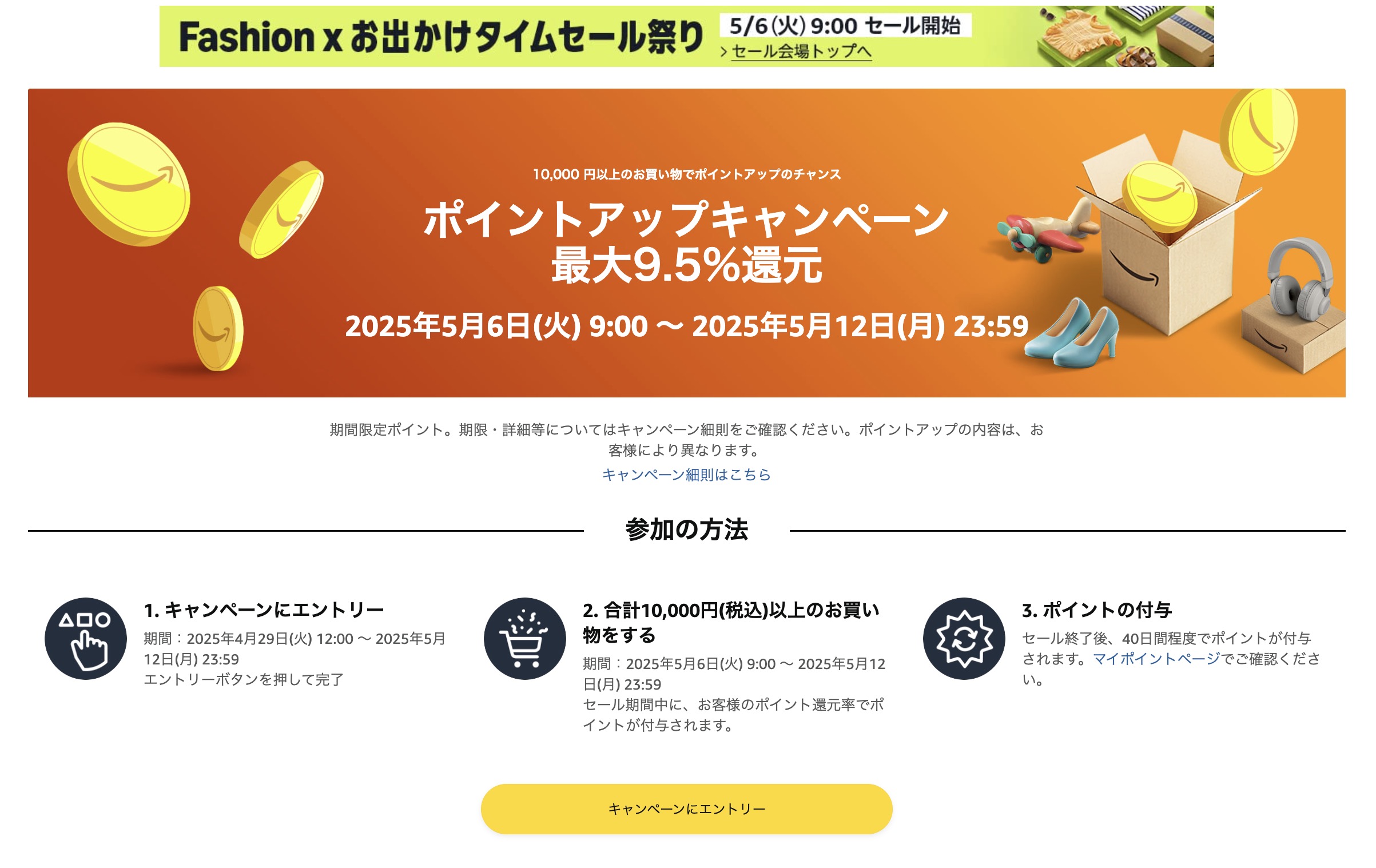 開催日時は2025年5月6日午前9時からとなっており、終了日時は12日終日。それと恒例のポイントっぷキャンペーンも同じ日程で実施される。