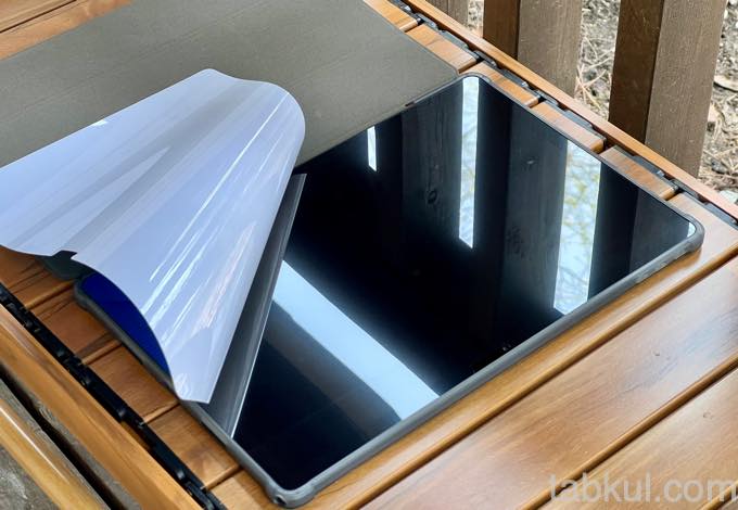 同梱品として含まれていること自体が珍しく、自分で貼れるようになっているのも新鮮だ。たまに気泡入りでPETフィルムが貼られていたりするとがっかりするので———。