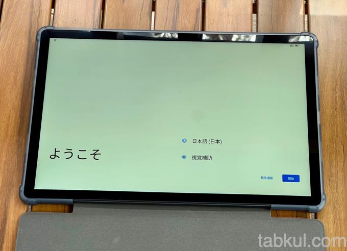 OSのセットアップはAndroid標準。私の端末では上記画面の初期値がEnglishだったので日本語に直してセットアップを開始した。
