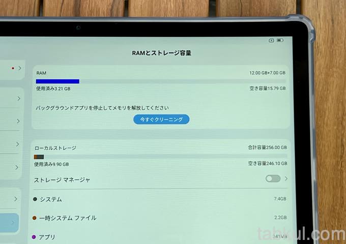 Androidタブレットは少し前までRAM8GBでも大容量だったのにと思うくらいアップデートサイクルが早い。こういったタブレット保護の配慮は嬉しい。