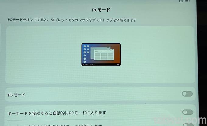 設定アプリの中にあるメニューから下図のPCモードを使い試した。