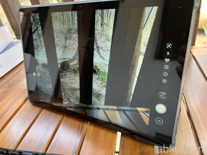 しかもメインカメラは5000万画素(SONYセンサー)と少し前のPixelスマートフォン並の解像度となっている。13インチの大画面を活かしてPCモード+キーボード+Webアプリで資料を作成中にリアルタイム撮影で活躍しそうだ。