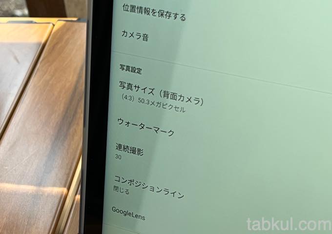 ちなみにカメラアプリの設定画面からウォーターマークをつけたり、撮影音のミュート、GoogleLensにバースト撮影設定も可能となっていた。