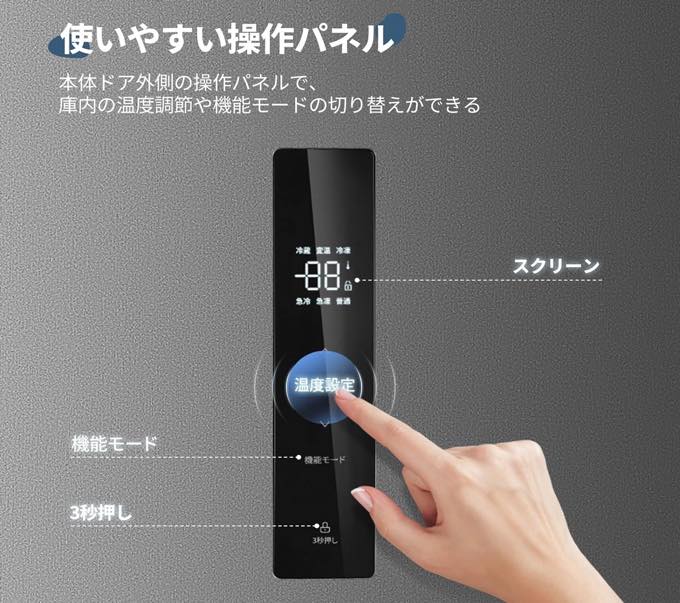 庫内の温度や温度設定、機能モードの変更といった機能を操作できます!