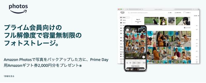 【プライムデー期間限定】Amazon Photosに写真バックアップで「Amazonギフト券2000円分」プレゼント中