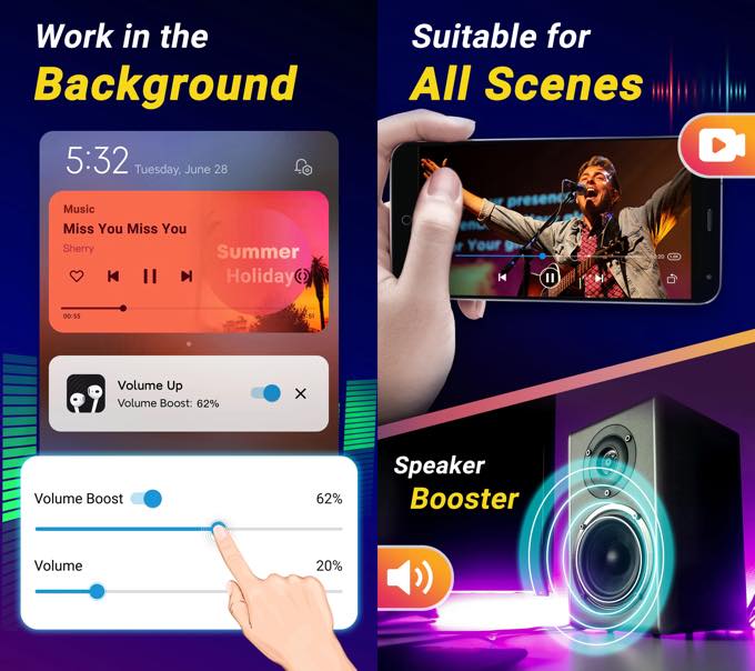 MaxBoost (ボリューム アンプ、サウンド アンプ) は、音質に影響を与えることなくメディアとシステムの音量を高めるのに適しており、ビデオ、オーディオブック、音楽、ゲーム、アラーム、着信音などに役立ちます。