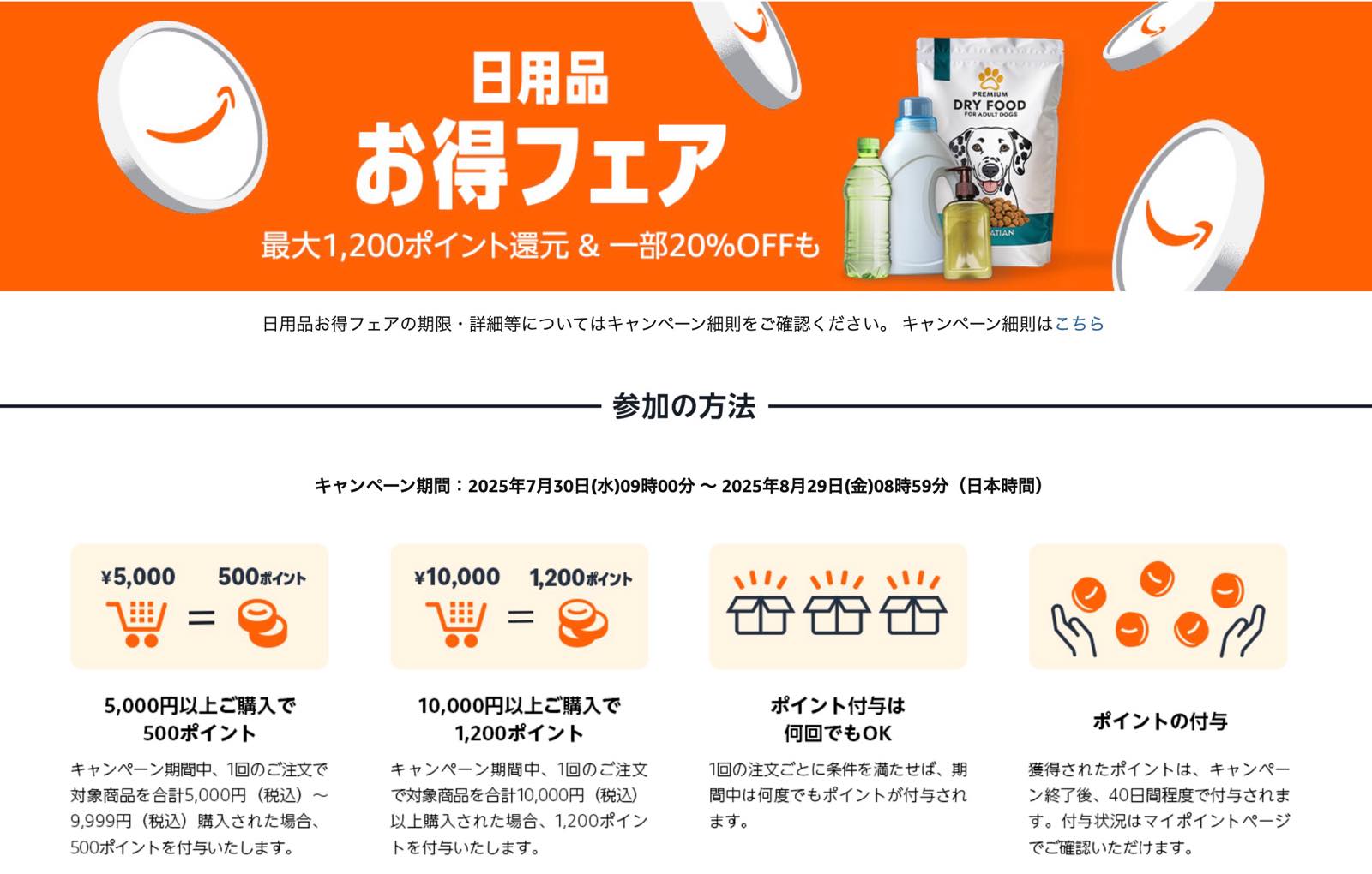繰り返し注文OK|日用品まとめ買いで最大1200円相当が還元、Amazon日用品お得フェア開催中