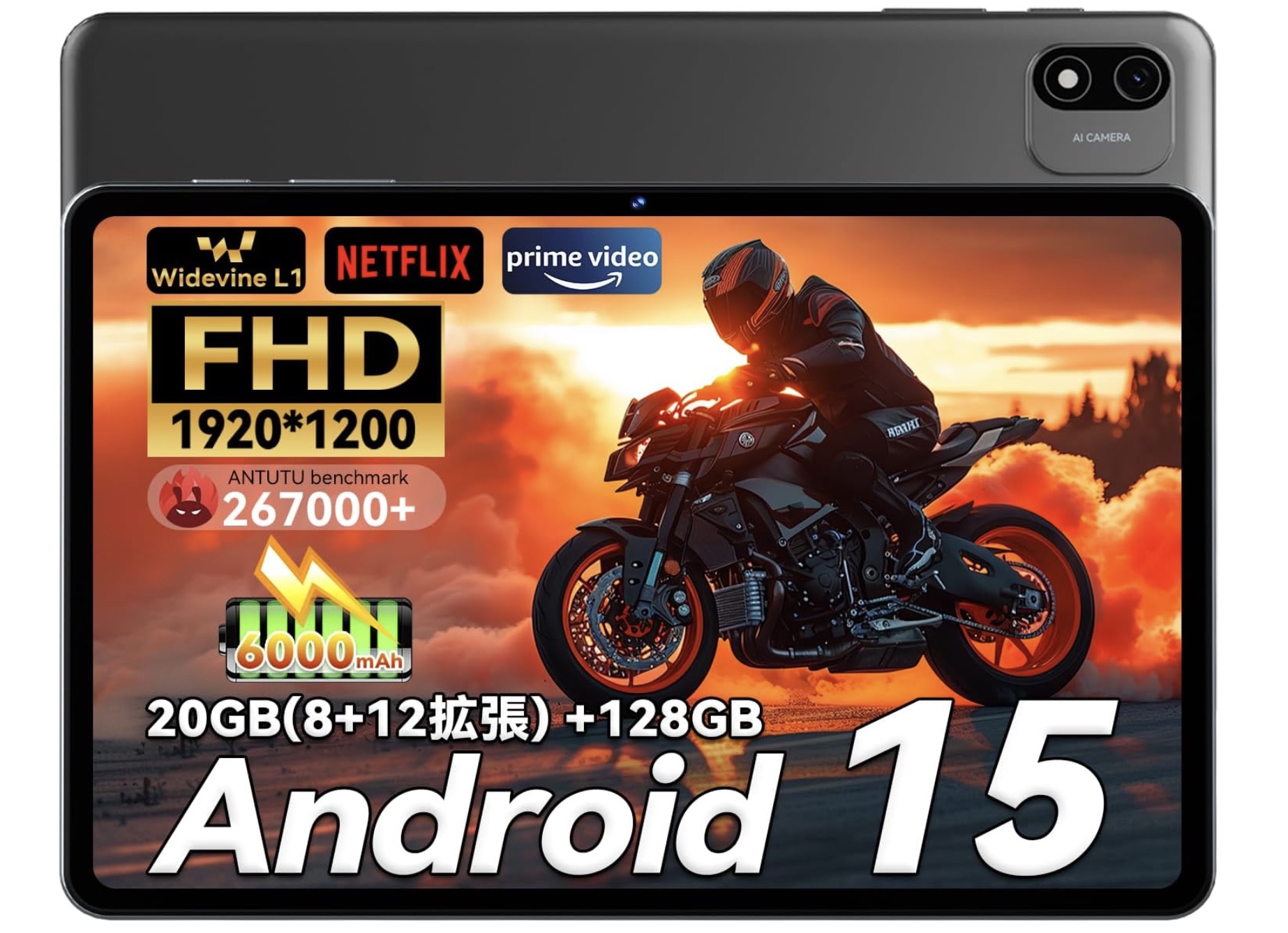 「Headwolf WPad6」は最新Android 15をプリインストールした10インチ(解像度1920×1200)のタブレットで、Widevine L1とNetflixに対応、さらにデュアルスピーカーと3.5mmイヤホンジャックを備えるなど動画視聴プレイヤーとして十分に使える端末。