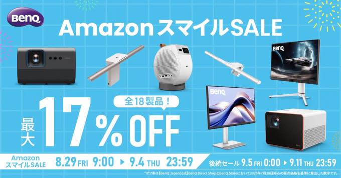 BenQの全18製品が最大17%OFFに、AmazonスマイルSALE参戦中(目玉商品あり)