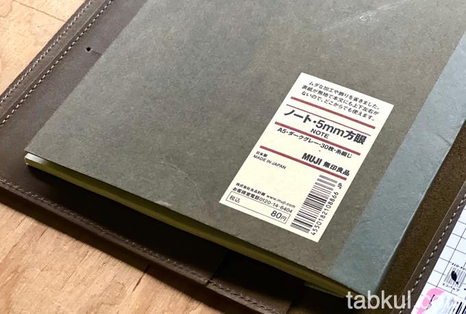 ちなみにA5ノートは「無印良品 ノート・5mm方眼 ダークグレー A5 30枚」を使っている。