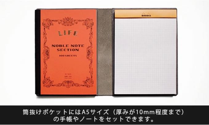 このA5サイズはロディアNo.16本革ケースにジャストフィットする。