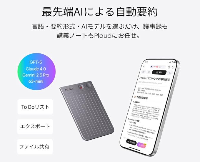 もう少し待てばChatGPTやGeminiあるいは新たなAIでスマートフォンのレコーダー機能を使った同様のサービスが実用レベルになるかもしれない。すでに翻訳と要約では驚かされるくらいの性能を誇っている。
