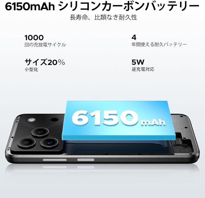 - バッテリー:6150mAh/5V2A充電/OTGリバース充電対応