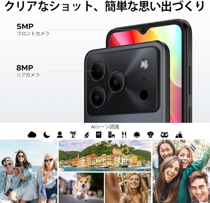- カメラ:8MPメイン+5MPフロント
