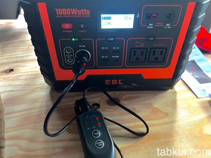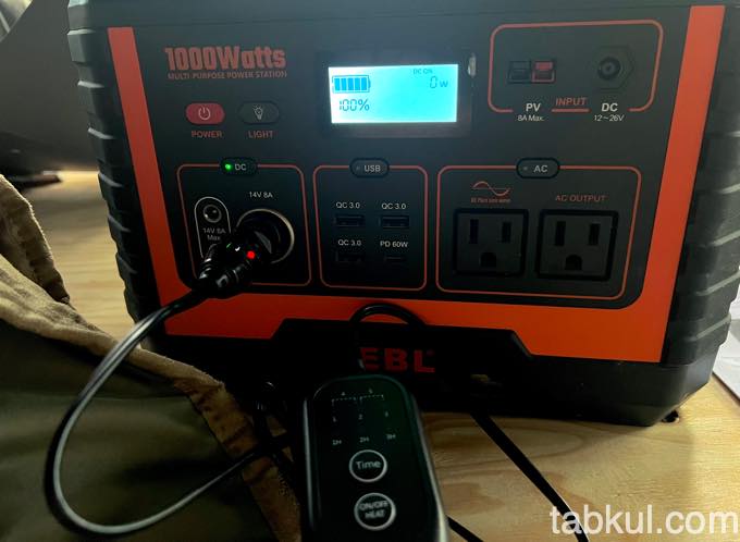 今回のテストは全て付属のシガーソケット式電源コードを経由している。12Vの電気毛布なのでバッテリー直結と同じ最も消費電力のロスが少ない検証となる。