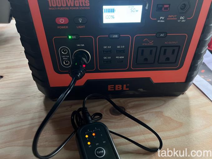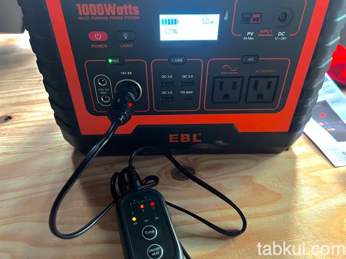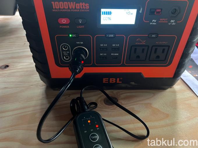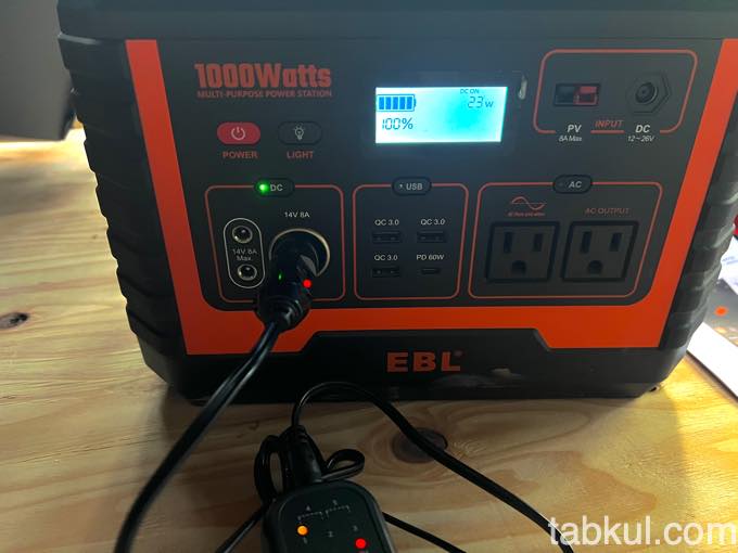 自動車で使う際はスターターバッテリー(鉛のやつ)を使うとエンジンがかからないといったトラブルが発生するので、必ずサブバッテリーか、ポータブル電源のシガーソケットに接続することをおすすめする。