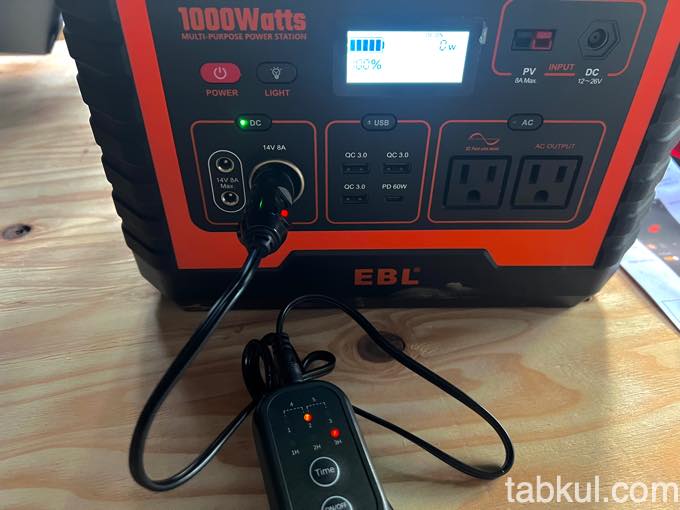 まずはポータブル電源のDC出力を起動して「BougeRV 12V電気毛布」を接続、起動した待機電力を見ていきたい。
