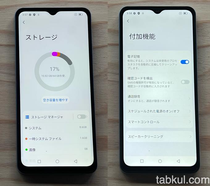 上図には「128GB」とあり、Amazon説明欄では「ROM 256GB」とあるがレビュー機とクーポンが発行されているAmazon販売ページの商品は「64GBストレージ」なので注意したい。