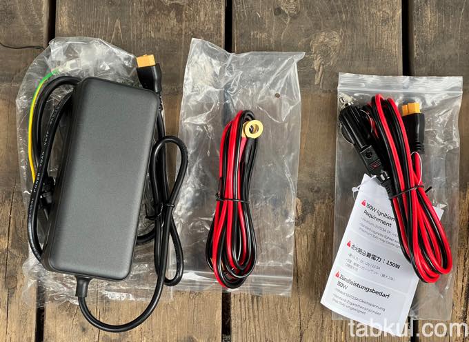 左からACコンセント、DC直結、DCシガーソケット経由だ。