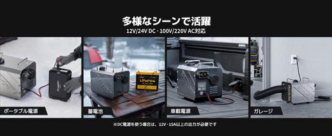 「BougeRV DHG003」というかFFヒーター自体が車載アイテムなので、当然ながらAC100VではなくDC12VおよびDC24Vで動作するように設計されている。