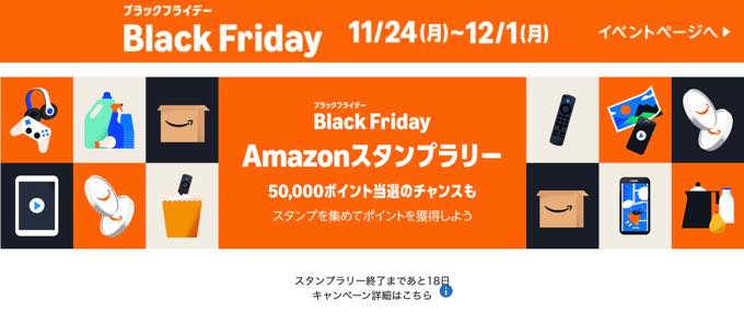 500円や50,000円相当の当選チャンス、Amazonスタンプラリー開催中・スタンプ条件ほか #ブラックフライデー