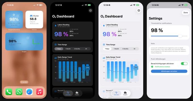 酸素飽和度 – SpO₂トラッカーiPhoneとApple Watchで、スマート通知、履歴インサイト、詳細なグラフを使って血中酸素濃度をモニタリング。