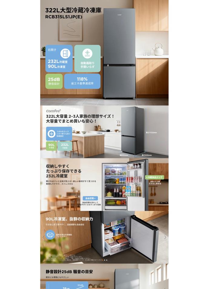 上図を見ると容量322Lとなっていて、おそらく同じ販売ページにある「RCB315LS1JP(E)」というモデルの説明画像なのだろう。