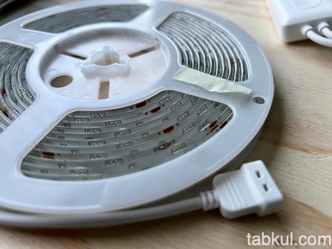 そこでテープライト2を切断して、配線を介することによって窓枠の上だけとかキッチン台の裏側だけ光らせるといったカスタマイズをしていきたい。