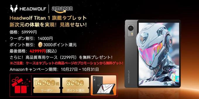 Headwolfブランドから2025年10月20日にリリースされたDimensity8300チップにリフレッシュレート144Hzという最新ゲーミングタブレット「Headwolf Titan1」が再びセールを実施している。