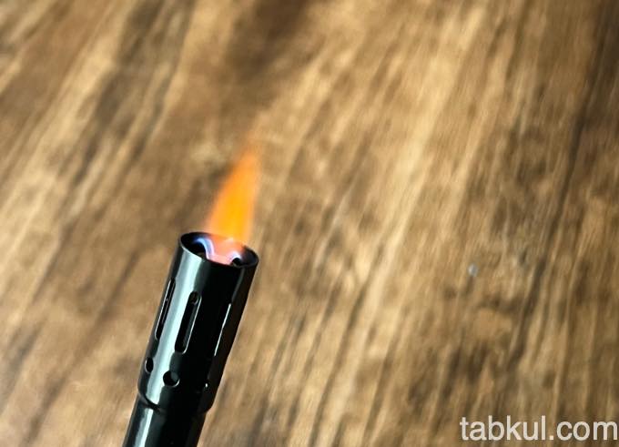 小さくて安くても「ターボミニ」という名称のライターなので、上図のように短く勢いのある火柱が立つ。ゆらゆらと揺らめくライターの方が燃費が良いように思うが、そこは調べていないのでわからない。