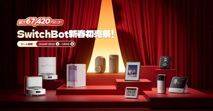SwitchBot株式会社(渋谷区)は2026年1月2日、アマゾンの公式ストアにおいて1月3日午前9時から「新春初売りセール」を開催すると発表した。