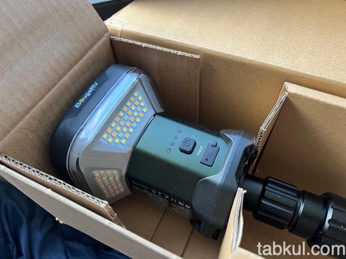 その先端には「BougeRV CL03ランタン」本体が接続された状態で入っていた。