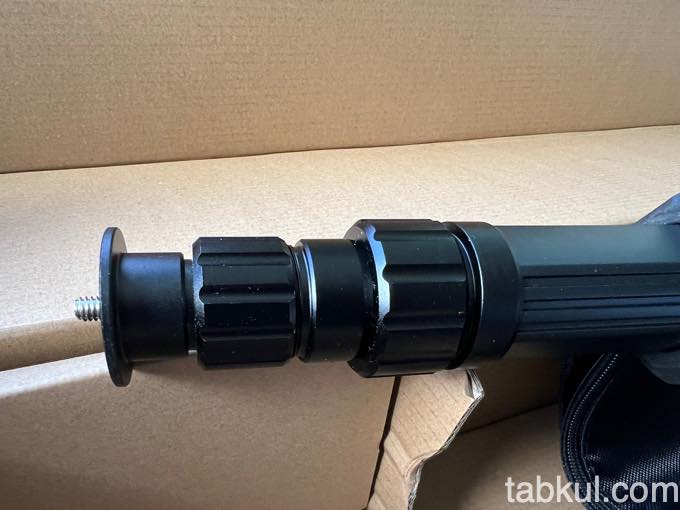 3つ足は底面のPUSHボタンを押すことでパカっと外れるので、そのまま根元側を地面の方向へ押していけば3つの足が広がるという仕組み。