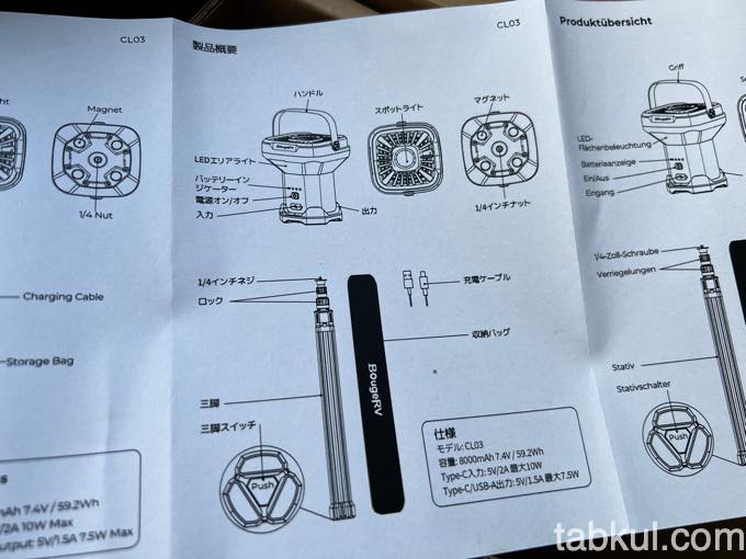 「BougeRV CL03ランタン」とは、開封レビュー