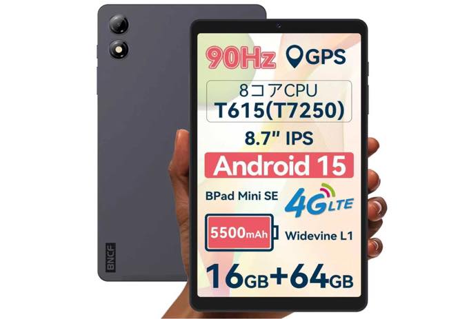 - 画面:8.7インチ(1340×800)リフレッシュレート90Hz、Widevine L1対応、Netflix対応